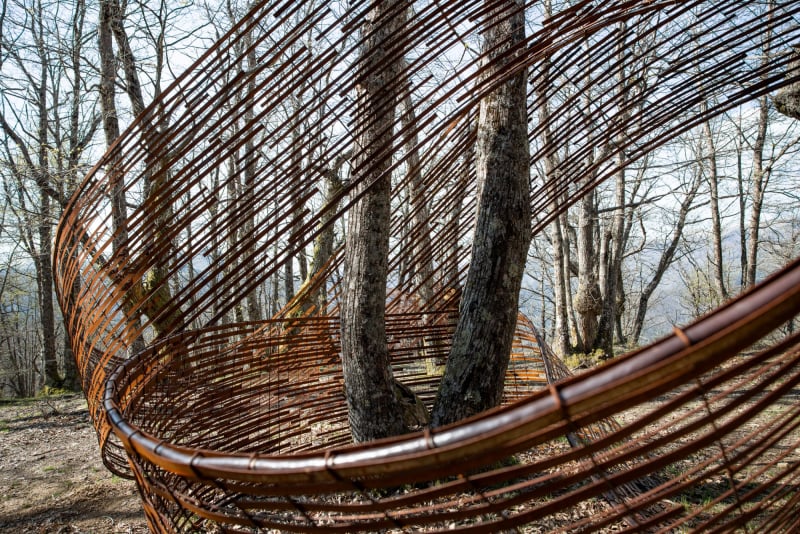 OCA Oasis Contemporary Art offers an immersive experience in the heart of the Pistoia Apennines, within the Oasi Dynamo nature reserve, featuring a circular route rich with works created by leading figures of the contemporary scene such as Alejandro Aravena, Mariangela Gualtieri with Michele De Lucchi, Kengo Kuma, Quayola, David Svensson, Pascale Marthine Tayou, and Matteo Thun.